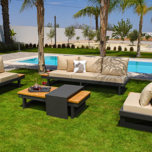 Bienvenue chez ICCI, leader de la fabrication de meubles de jardin en aluminium alliant confort, élégance et résistance aux intempéries. Nos créations transforment vos espaces extérieurs en véritables oasis de style grâce à des produits innovants et durables conçus pour durer. Notre succès en Tunisie repose sur notre engagement envers la qualité, l’innovation et la satisfaction client. En utilisant exclusivement de l’aluminium de haute qualité, nous garantissons des meubles résistants à la rouille et aux éléments, tout en continuant à améliorer constamment nos produits et services.