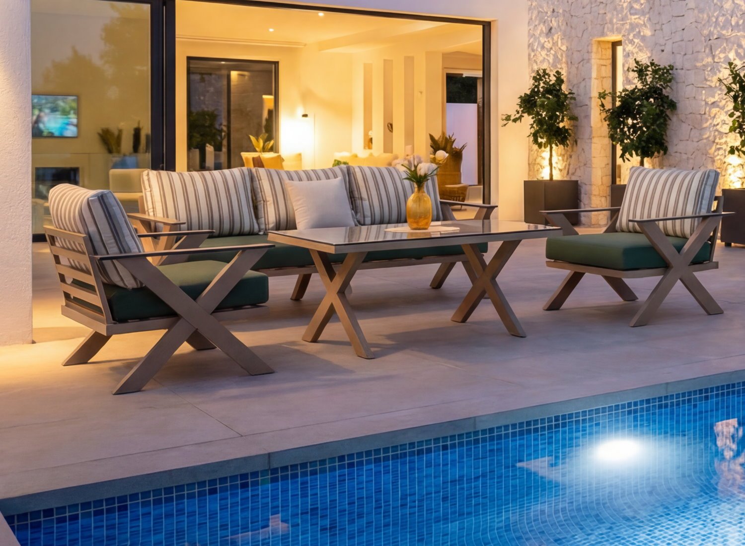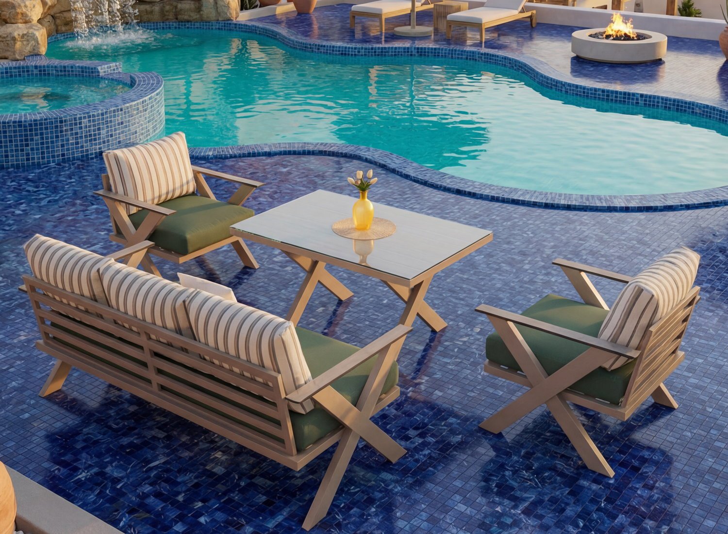 Un salon extérieur pensé pour durer, alliant esthétique contemporaine, matériaux techniques et confort supérieur.