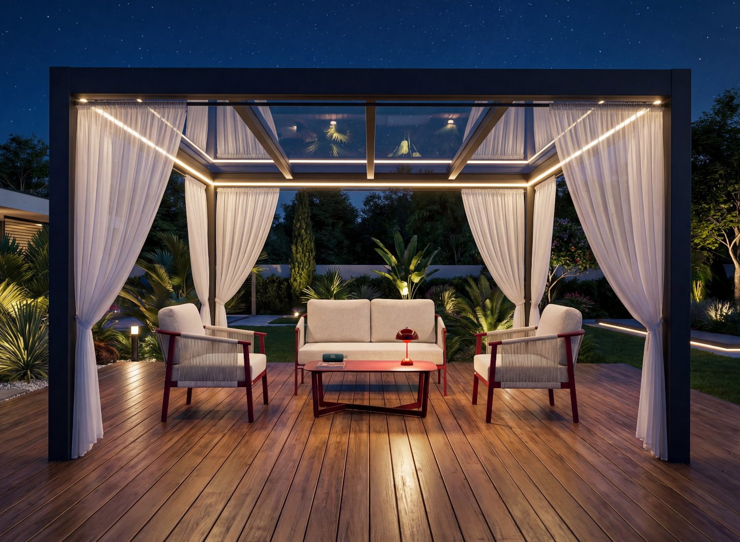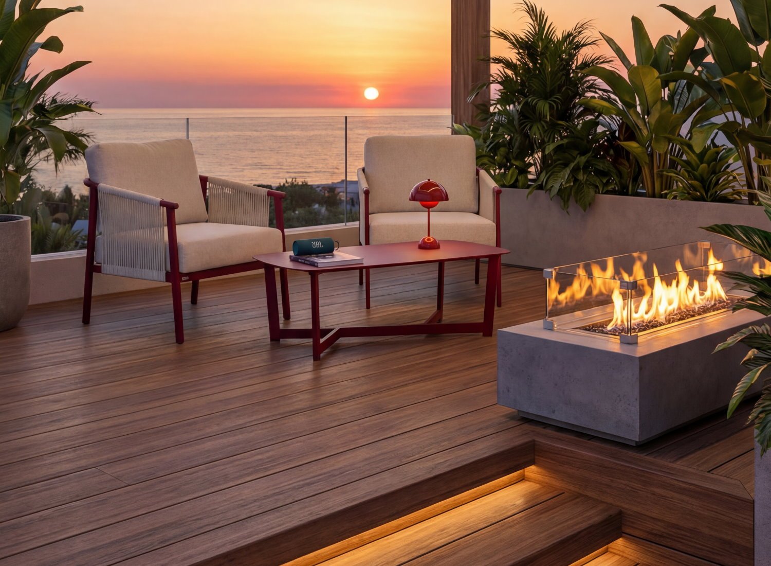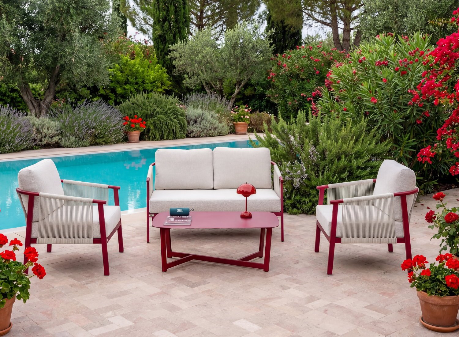 Le salon NAIROBIE affirme un style audacieux et chaleureux, inspiré des ambiances contemporaines aux accents naturels. Installé dans un décor ouvert, entre palmiers et lignes épurées, il crée une atmosphère conviviale et élégante, idéale pour les espaces extérieurs à forte personnalité.