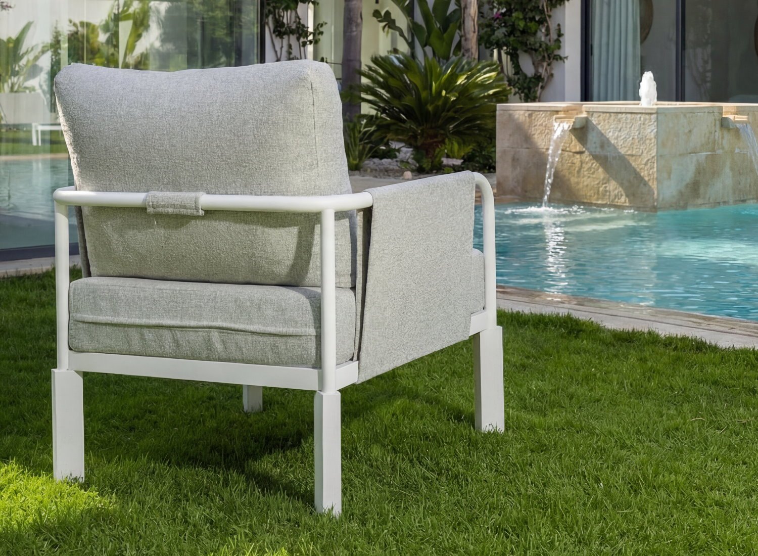 Le salon PATAYA se compose d’un canapé confortable et de fauteuils assortis, aux lignes épurées et aux proportions équilibrées. Sa structure en aluminium traité époxy et cuit au four assure une excellente résistance aux conditions extérieures, tout en conservant une finition soignée et durable. Son style moderne s’intègre naturellement sur une terrasse, dans un jardin ou au bord d’une piscine.