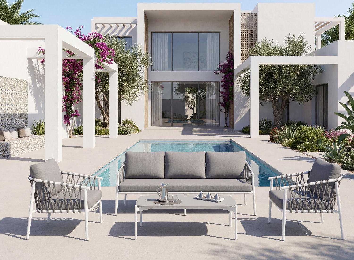 Le Salon TENDENCE incarne l’élégance moderne et la performance outdoor. Conçu avec une structure en aluminium robuste et habillé d’une corde tressée haute performance, il offre un équilibre parfait entre design contemporain et confort durable.