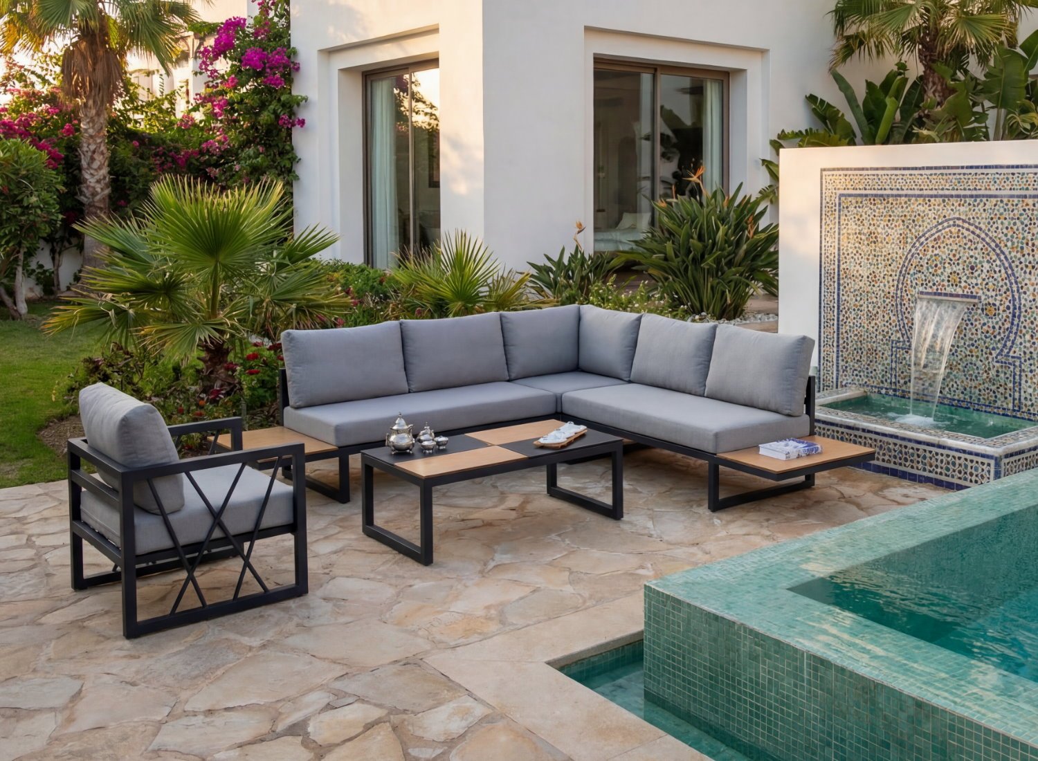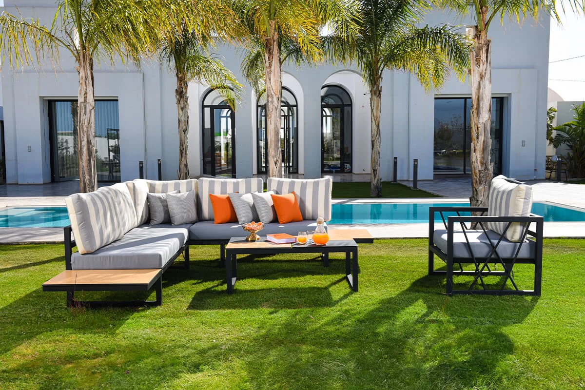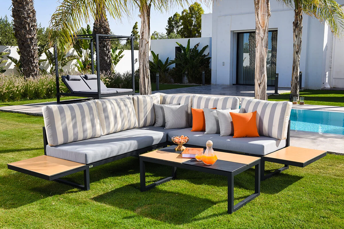Explorez l’élégance et le confort de nos salons de jardin en aluminium, conçus pour métamorphoser vos espaces extérieurs en oasis de sérénité et de convivialité. Chaque ensemble allie esthétique et fonctionnalité, offrant ainsi une expérience unique et sophistiquée.