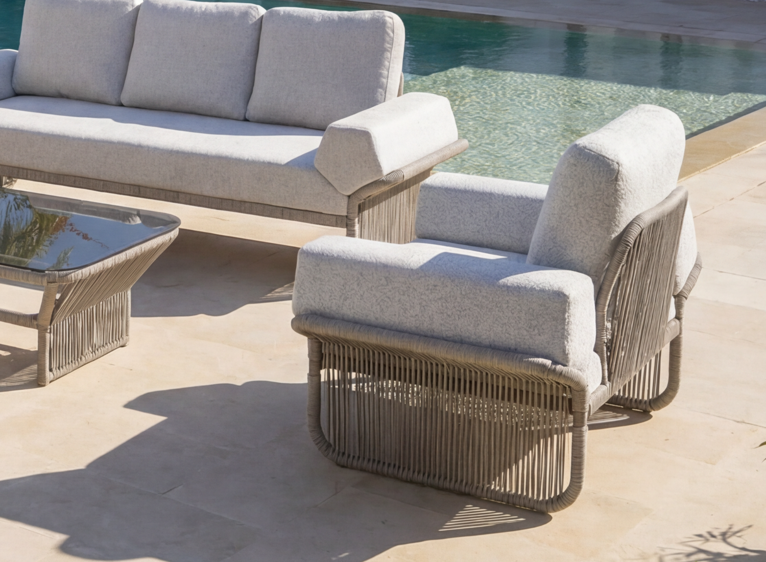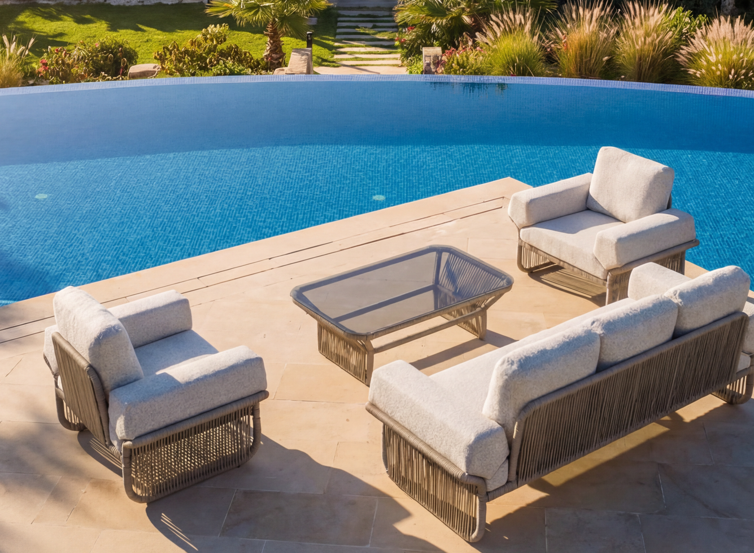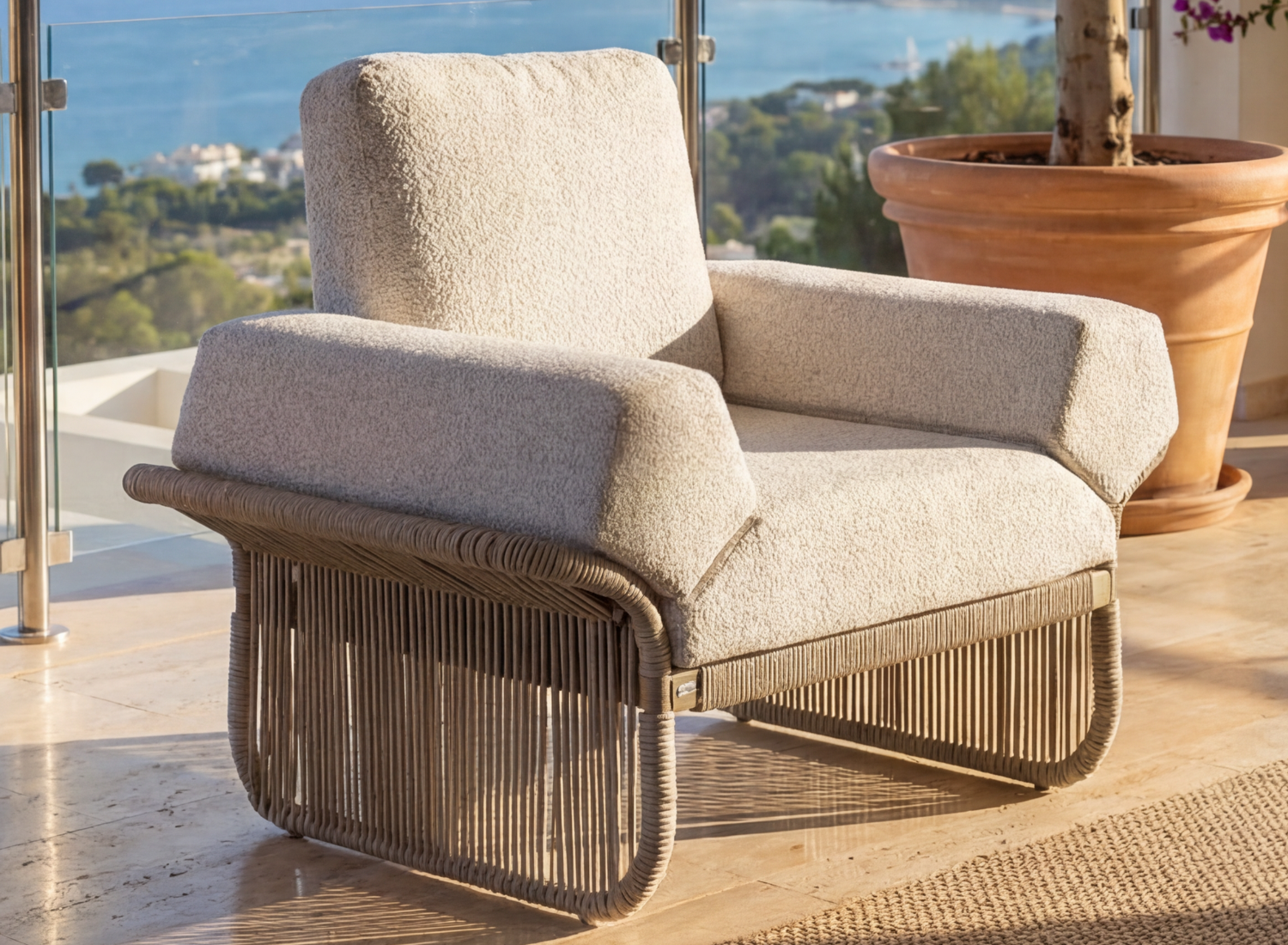 Le salon VICTORIA se compose d’un canapé 3 places et de deux fauteuils 1 place, aux lignes harmonieuses et aux volumes généreux. Sa structure en aluminium traité époxy et cuit au four garantit une résistance optimale face à l’humidité, au soleil et à l’usage intensif. Son esthétique sobre et moderne s’intègre naturellement dans tous les environnements, en intérieur comme en extérieur.