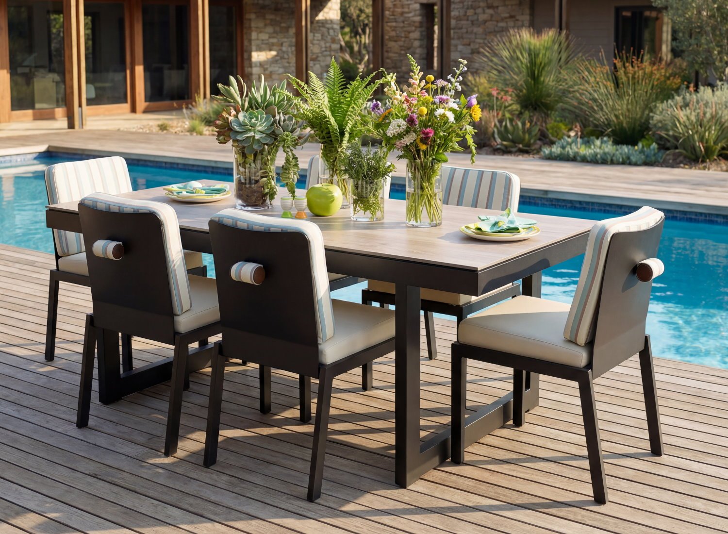 Une chaise extérieure élégante et sécurisée, où l’aluminium et le bois se rencontrent avec maîtrise.