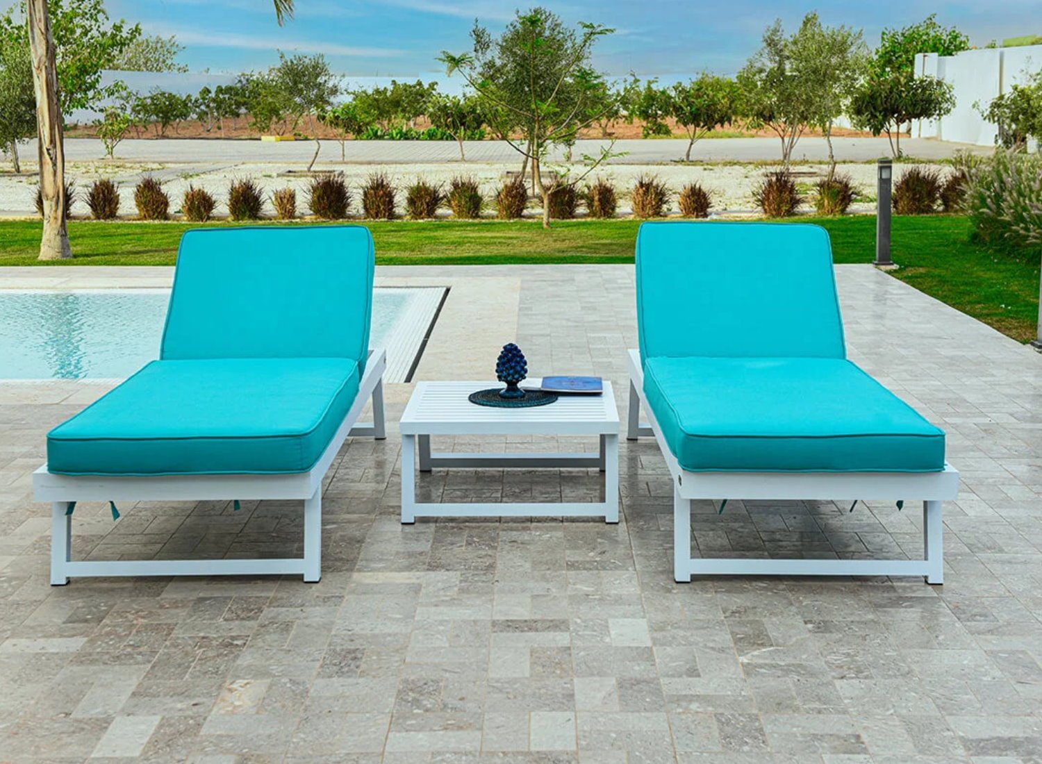 Sa structure en aluminium assure solidité, légèreté et résistance aux conditions extérieures. La particularité du Salon Magic réside dans ses dossiers amovibles, facilement démontables grâce à un système discret de fixation par trous intégrés. Cette modularité permet de transformer le salon selon les usages : salon classique, meuble de coin, lit de détente, ou encore deux transats indépendants en retirant l’ensemble des dossiers.